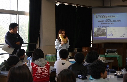 修士課程を修了後、民間企業(第一工業製薬株式会社)に就職し、研究部門で4年間働きました。一番長く取り組んだのは、「有機無機ハイブリッド高屈折率材料の開発」です。これは、ゾル-ゲル反応を利用して高屈折材料を作ることを目的とした研究でしたが、研究を進めるにあたっては無機化学の知識が必要となりました。(写真:地域貢献活動の様子)
