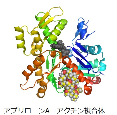 次に、なぜそれほど強い制がん効果があるのか知るため、アプリロニンが体内の何を標的としているのか相互作用を調べたところ、タンパク質のアクチンと結合することが分かったのです。