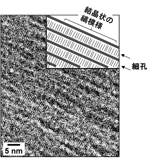 それでも諦めがつかず、電子顕微鏡による多孔体観察の大家である東北大学の寺崎教授に「壁が結晶状になっているはずなので見てください」とお願いしました。そこは執念ですよね。すると、壁に結晶状の縞模様が見えたのです。
