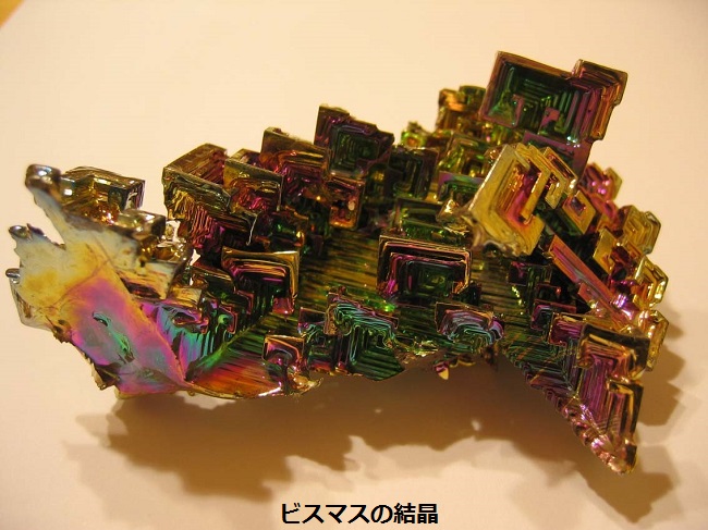 ところで、ビスマスというのはとてもきれいな鉱物で、コレクターアイテムの一つにもなっています。