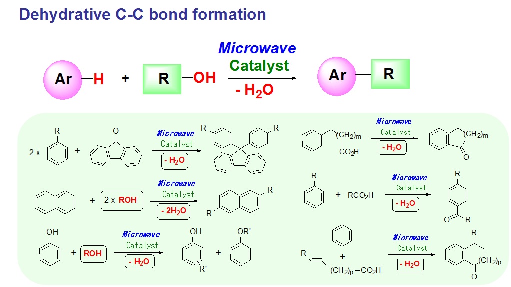 For the efficient production of functional chemicals and materials with microwave assicted reactions, we investiagate the evaluation of microwave absorption properties of chemical substances and the development of innovative chemical reactions combined with catalytic technologies.