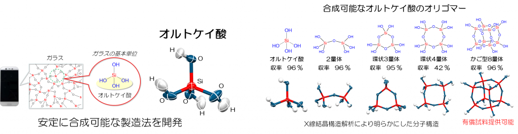 We are developing a synthetic method for orthosilicate and its oligomers, which are the basic unit of glass.