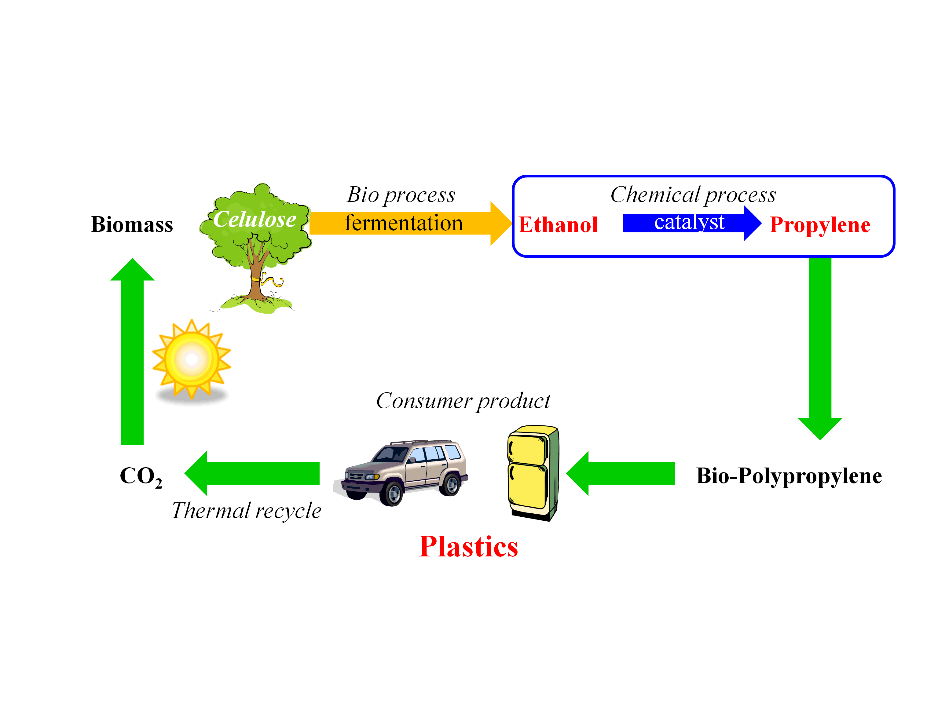 There is an increasing demand for fuel and polymeric materials and the foreseeable shortage and depletion of crude oil. Hence, there is an urgent need for the development of alternative ways to satisfy the growing demand for chemicals and fuels. Biomass has attracted considerable interest as an alternative resource because it is a renewable resource with fewer adverse effects on the environment. The resins produced from biomass resources have been developed for plastic products, but it is not sufficient in terms of cost and performance. Hence the objective of this work is to develop a technology to produce basic chemicals more efficiently from the biomass-derived materials.