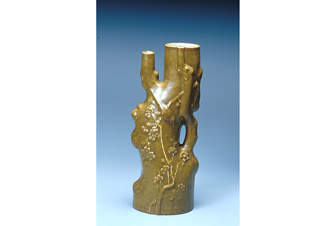 参考品 中国【装飾品】:茶葉末釉鶯文梅樹形花生