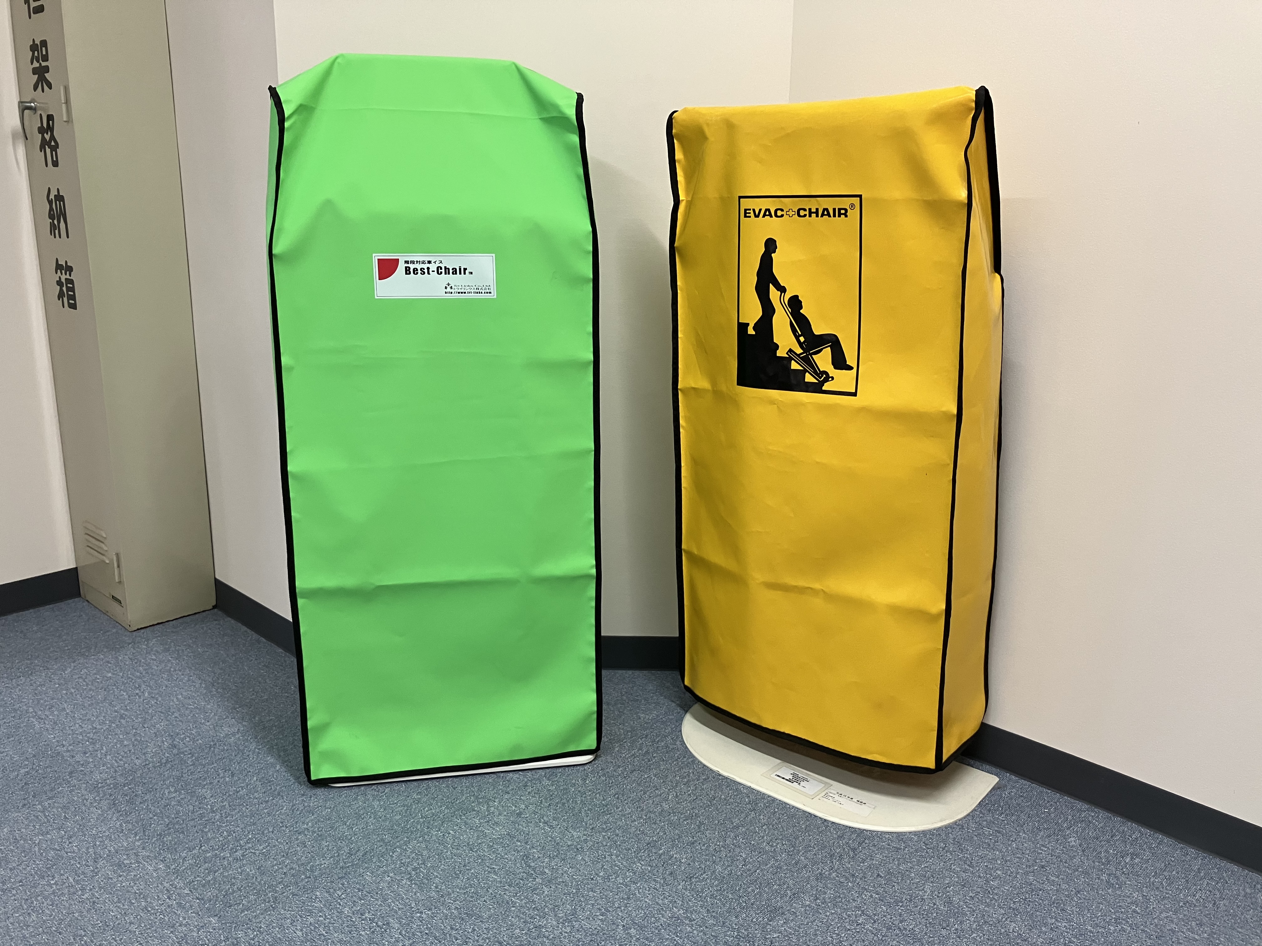 また、東日本大震災後には障がいのある職員の避難対策として、階段避難車(EVAC+CHAIR、Best-chairなど)の設置をしました。