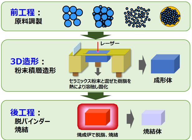 しかし、これを達成するためには、実は造形だけではなく、その前の原料粉体調製や、造形後の脱脂や焼成まで一気通貫のプロセス制御が必要でした。