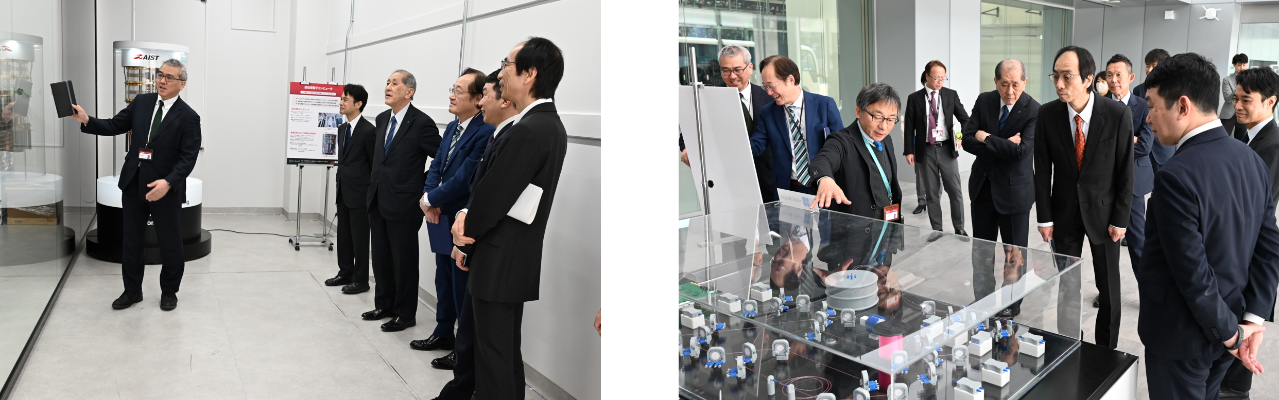 また、本協定締結後には、G-QuATの研究施設見学が行われました。2023年7月に設立されたG-QuATでは、GPUスーパーコンピュータと3種類の量子コンピュータから構成される計算環境であるABCI-Qなど、国内最先端の量子技術研究環境を有しています。施設見学を通じて、最先端の研究環境と高度な技術基盤を確認し、両機関の連携による今後の研究開発および社会実装のさらなる発展に対する期待が一層高まりました。