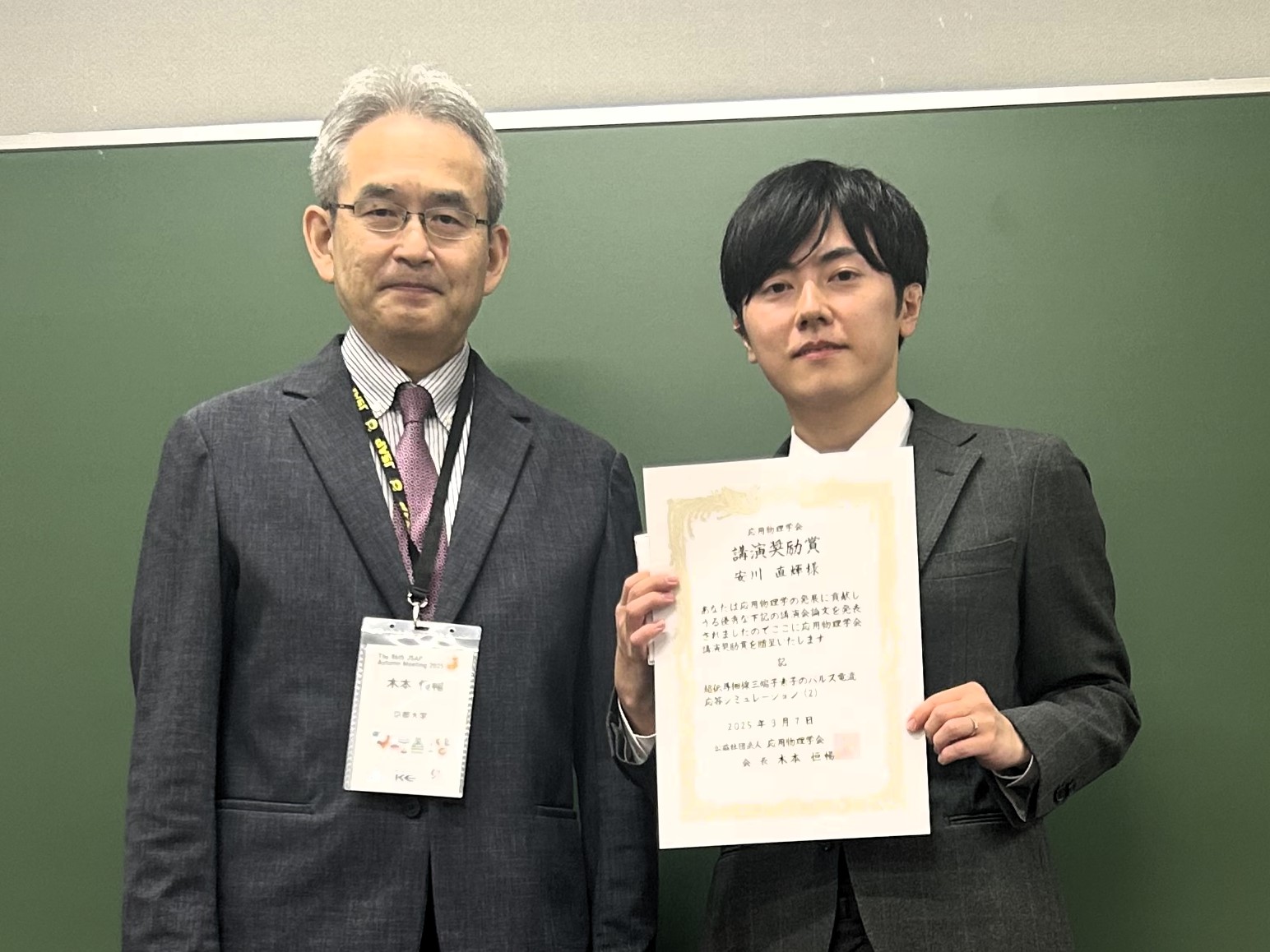 安川 直輝リサーチアシスタントが応用物理学会「第58回(2025年春季)応用物理学会講演奨励賞」を受賞
