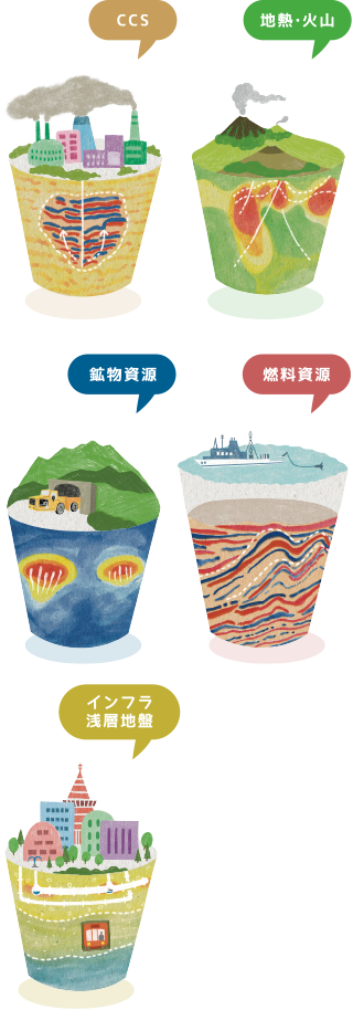 エネルギーや鉱物など資源開発に資する探査、重要施設の立地評価、レジリエントインフラ実装研究センターとの連携のもとで水道・堤防などインフラの保全に資する探査手法開発など、幅広い分野において研究を展開しています。