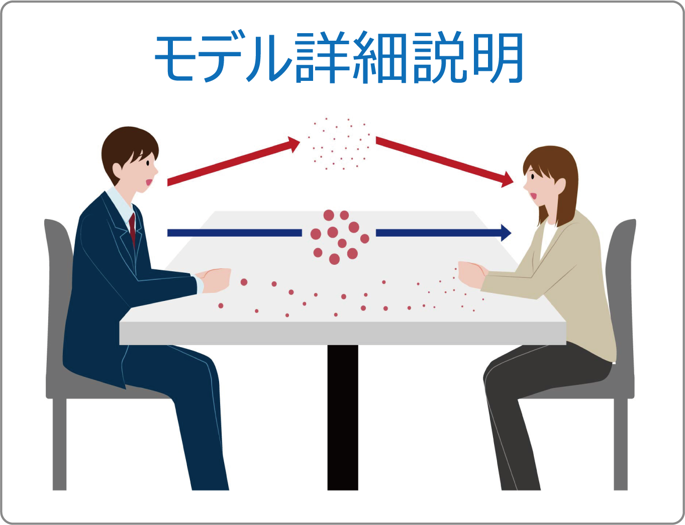 - 本評価は、上記の詳細な暴露評価モデルにいくつかの不確実性を有しています。ウイルス暴露量や感染リスクの数値については、参考としてお取り扱いください。