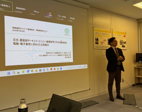情報通信ネットワーク産業協会の環境委員会にて、増井副ラボ長が当ラボの活動紹介をしてきました。参加者からは「ユーザニーズ等も含めたバリューネットワークの考え方が新鮮だった」、「リユースを行う上でのポイント解説が興味深かった」などのご意見をいただくとともに、情報通信業界に係る今後の取り組みについて方向性を議論しました。