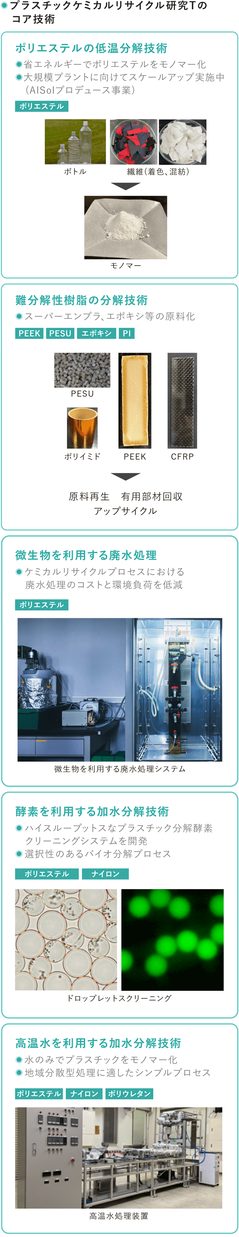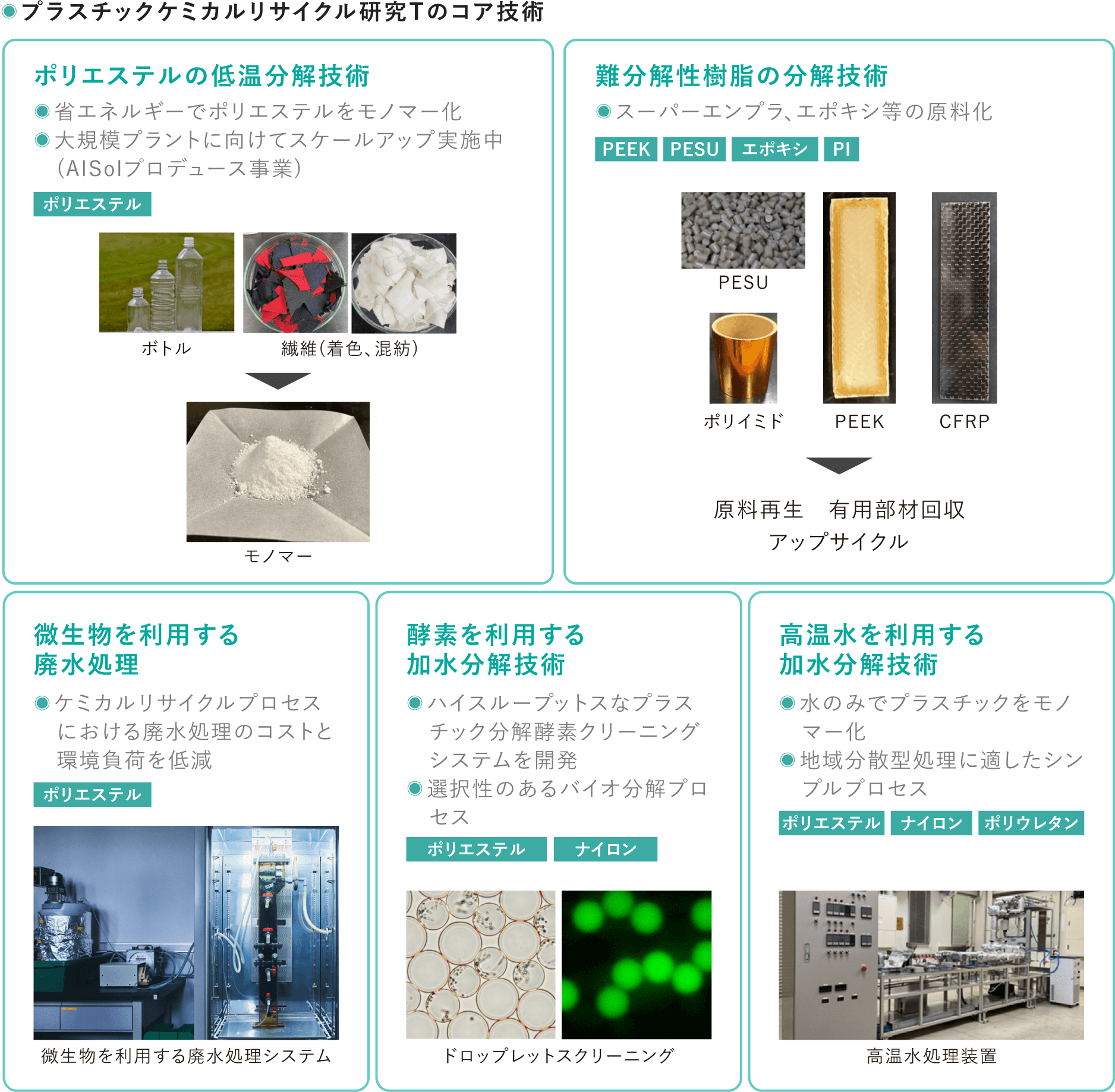 産総研では、様々な種類、量、状態に対応する解重合技術を開発