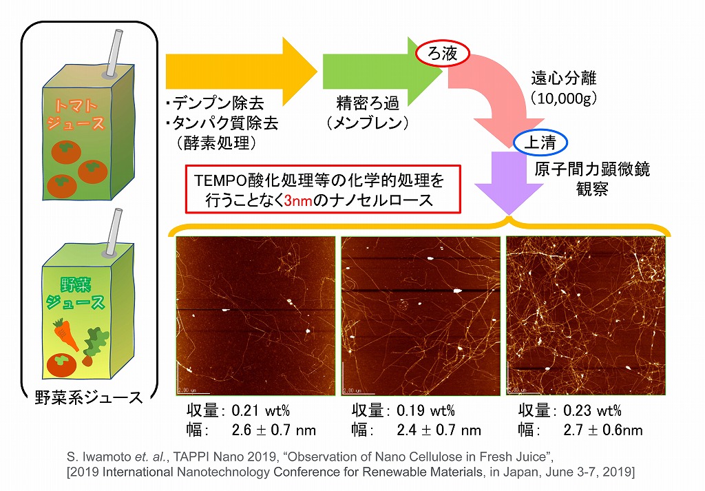 そこで、市販の野菜系ジュースを分析した結果、とても微細なナノセルロースが含まれていることが分かりました。