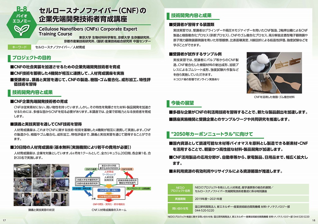 ![]() ナノテク展2022で配布されたNEDO事業パンフレット(人材育成講座のページ) |