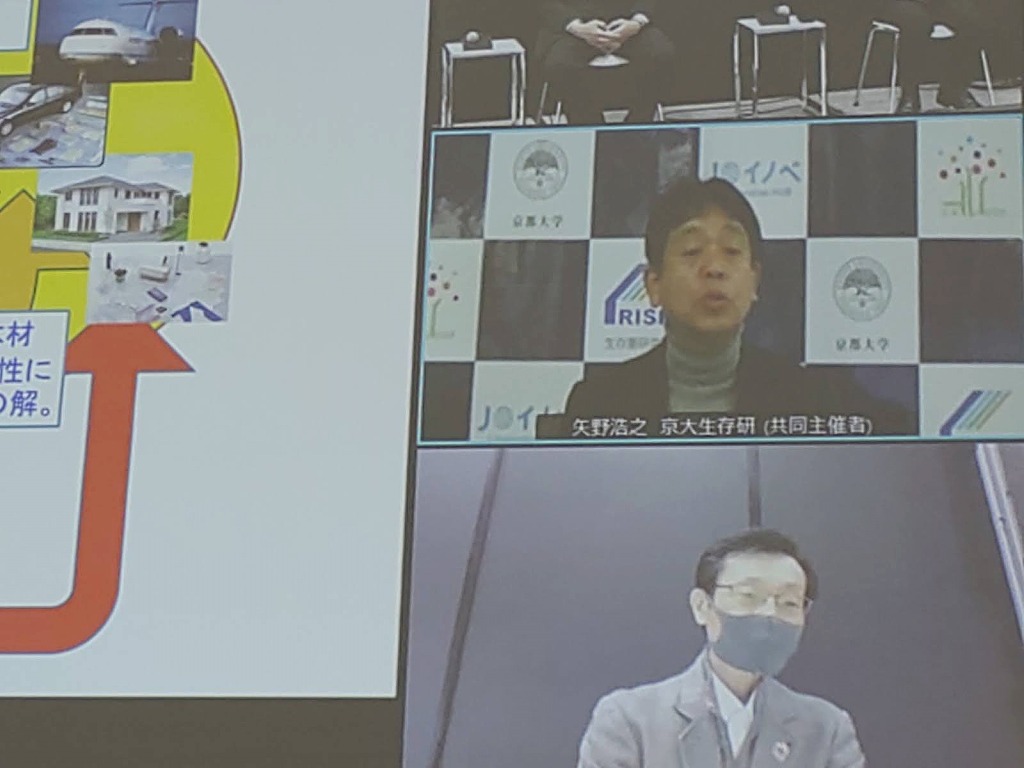 ![]() パネリスト(右上・オンライン登壇) 京都大学・矢野浩之 教授 |