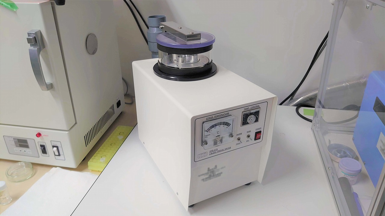 | 仕様・用途 | 走査型電子顕微鏡(SEM)用乾燥試料の作製。SEM試料台をそのまま設置可能。 ※ペルチェ式冷却機構,減圧機構  |