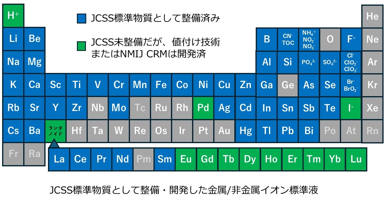 JCSS標準物質として整備・開発した金属/非金属イオン標準液 |