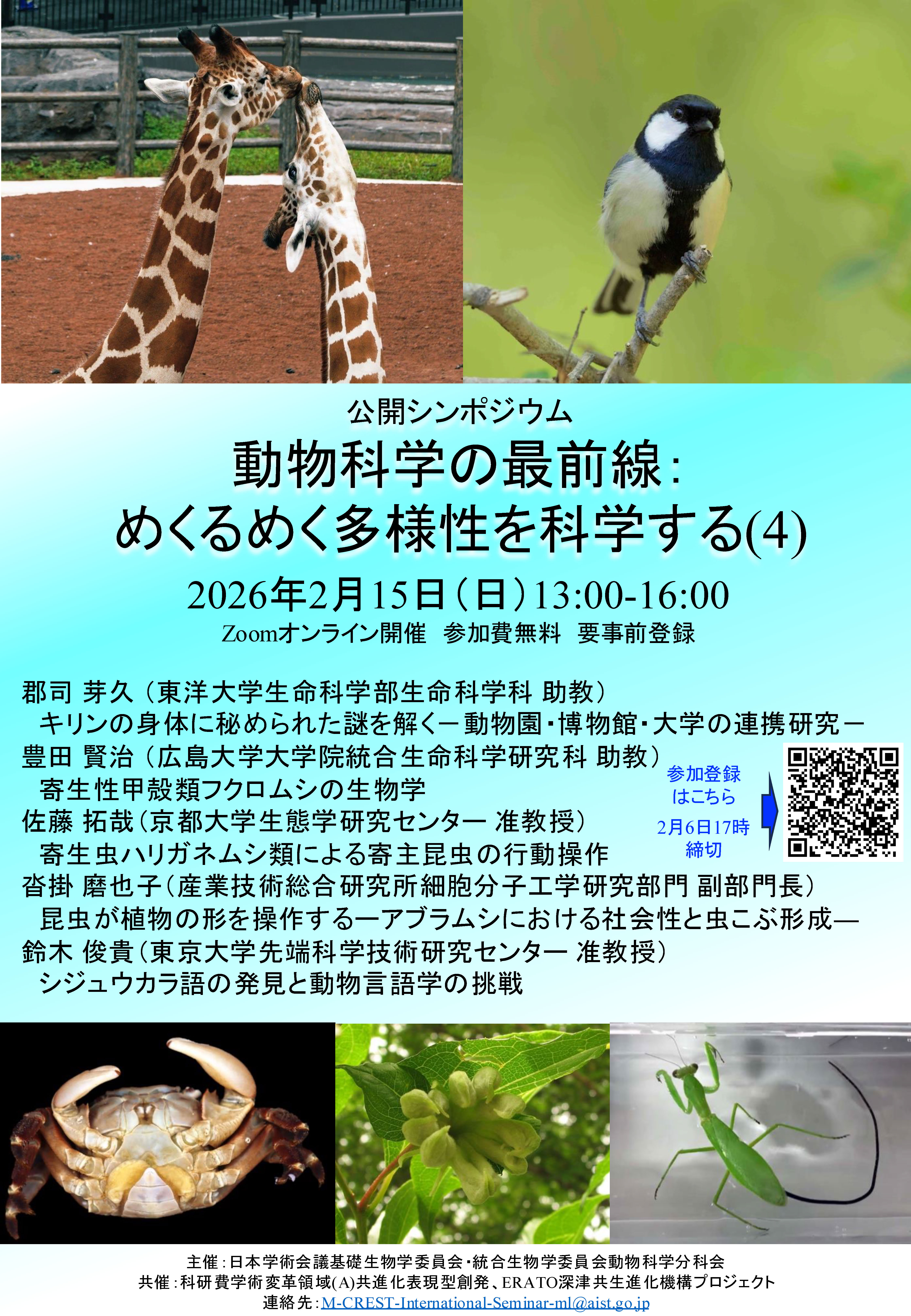「動物科学の最前線:めくるめく多様性を科学する(4)」シンポジウム(2月15日開催)New