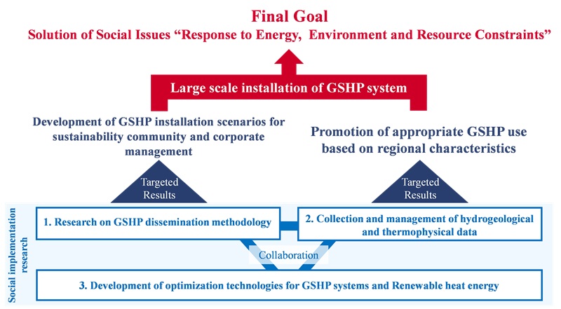 The ultimate goal of this team is to solve the “social issue: addressing energy, resources and environmental constraints” by achieving mass introduction of ground source heat pump (GSHP) systems.