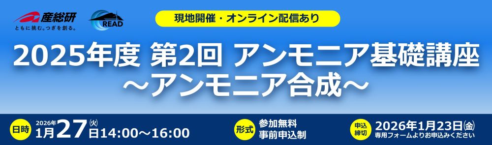 ※参加申込フォームがご利用できない場合は、2026年1月27日(火)「2025年度 第2回 アンモニア基礎講座」開催のご案内