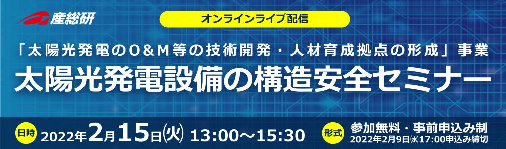 2022年2月15日(火)「太陽光発電設備の構造安全セミナー」開催のご案内
