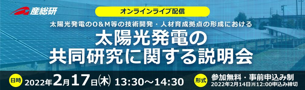 2022年2月17日(木)「太陽光発電のO&M等の技術開発・人材育成拠点の形成における太陽光発電の共同研究に関する説明会」開催のご案内