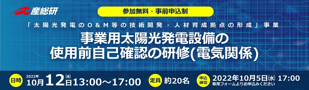 2022年10月12日(水)「事業用太陽光発電設備の使用前自己確認の研修(電気関係)」開催のご案内