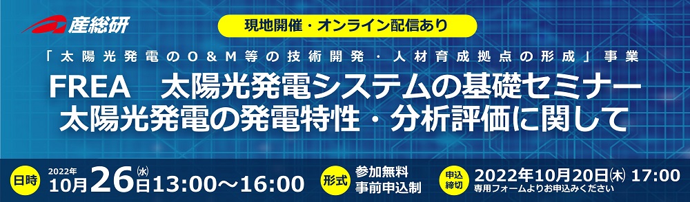 2022年10月26日(水)「FREA 太陽光発電システムの基礎セミナー 太陽光発電の発電特性・分析評価に関して」開催のご案内