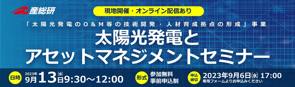 2023年9月13日(水)「太陽光発電とアセットマネジメントセミナー」開催のご案内