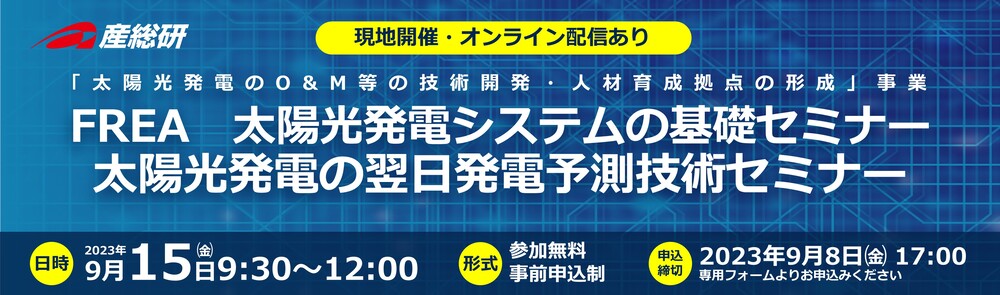 2023年9月15日(金)「FREA 太陽光発電システムの基礎セミナー 太陽光発電の翌日発電予測技術セミナー」開催のご案内