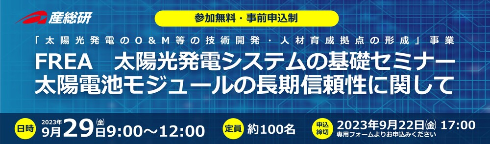2023年9月29日(金)「FREA 太陽光発電システムの基礎セミナー 太陽電池モジュールの長期信頼性に関して」開催のご案内