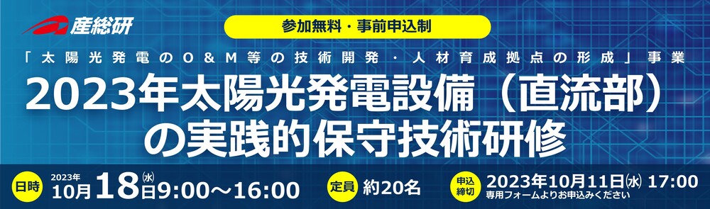 | 名称 | 2023年太陽光発電設備(直流部)の実践的保守技術研修 |