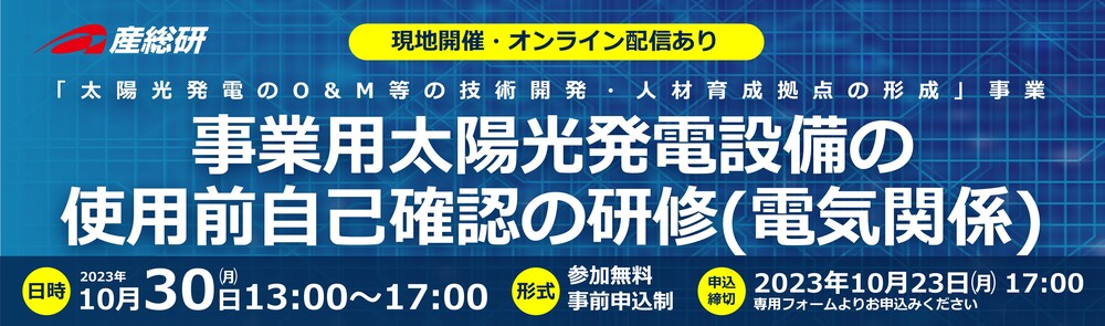 2023年10月30日(月)「事業用太陽光発電設備の使用前自己確認の研修(電気関係)」開催のご案内