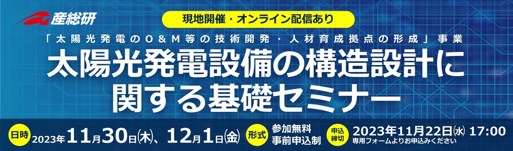 2023年11月30日(木)、12月1日(金)「太陽光発電設備の構造設計に関する基礎セミナー」開催のご案内