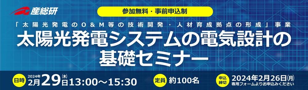 2024年2月29日(木)「太陽光発電システムの電気設計の基礎セミナー」開催のご案内