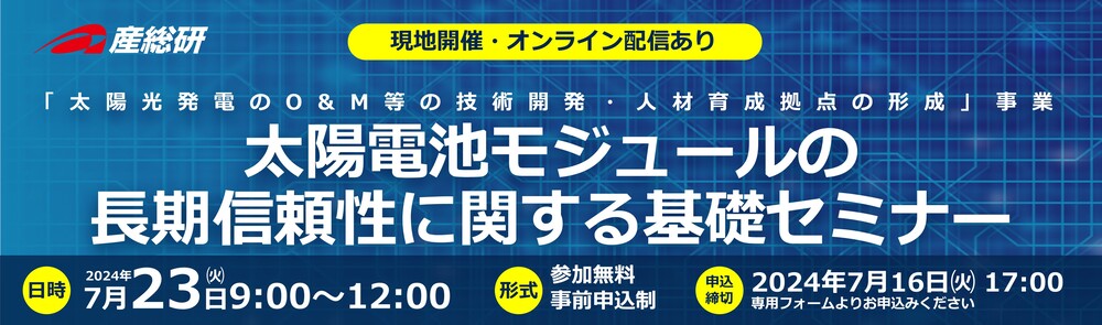 2024年7月23日(火)「太陽電池モジュールの長期信頼性に関する基礎セミナー」開催のご案内