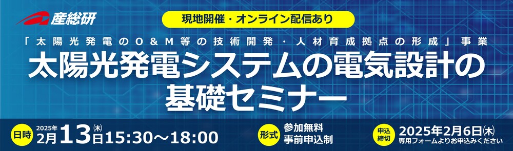 2025年2月13日(木)「太陽光発電システムの電気設計の基礎セミナー」開催のご案内