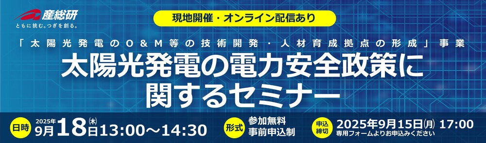 2025年9月18日(木)「太陽光発電の電力安全政策に関するセミナー」開催のご案内開催のご案内