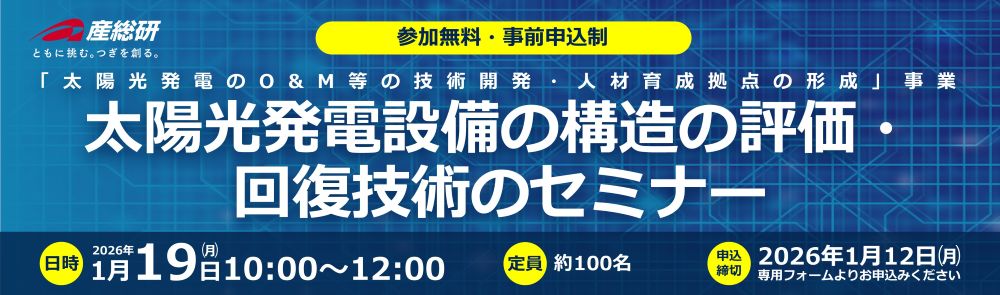 ※参加申込フォームがご利用できない場合は、2026年1月19日(月)「太陽光発電設備の構造の評価・回復技術のセミナー」開催のご案内