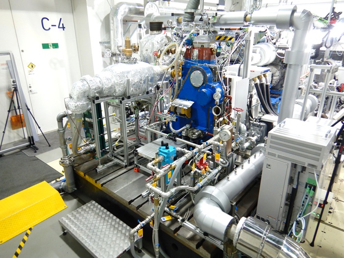 アンモニアガスタービンの燃焼器内部の状態を再現できるリグ試験機。