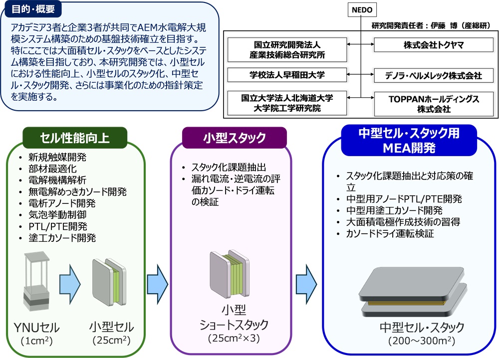 ※産総研、早稲田大学、北海道大学,(株)トクヤマ、デノラ・ペルメレック(株)、TOPPANホールディングス(株)の共同受託プロジェクト