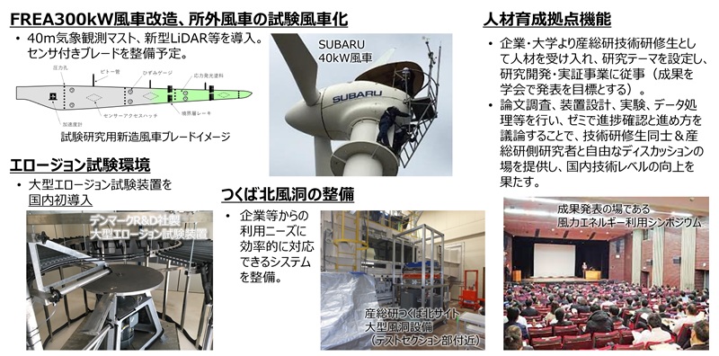 このプロジェクトでは、国内外の大学・研究機関、風力発電関連企業との連携体制を構築し、試験を伴う共同研究・技術コンサルティングを通じて、企業人材の育成と国内企業の競争力強化につながる活動を推進しています。