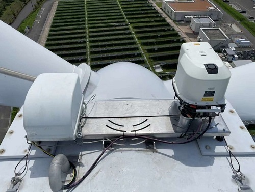 風車前方(4方向)にレーザーを照射し、風車上流側の風速・風向を計測・評価できる装置です。