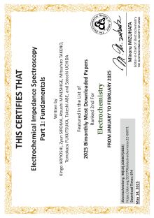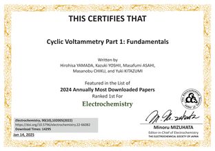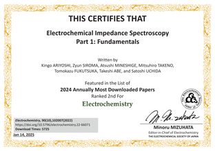 | 受賞名 | 2023年 Electrochemistry誌被引用回数上位論文 (被引用回数第3位) |