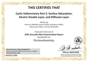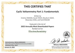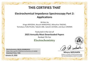 | 受賞名 | 2025年7・8月 Electrochemistry誌ダウンロード数上位論文 (ダウンロード数第1位) |