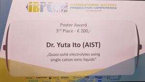 | 受賞名 | Poster Award 3rd place (International Battery Production Conference 2025) ![]() |