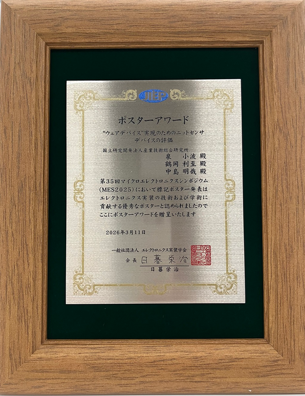 共同研究成果発表で、日本工業大学基幹工学部の智田さんがエレクトロニクス実装学会の回路・実装設計技術委員会奨励賞を受賞: