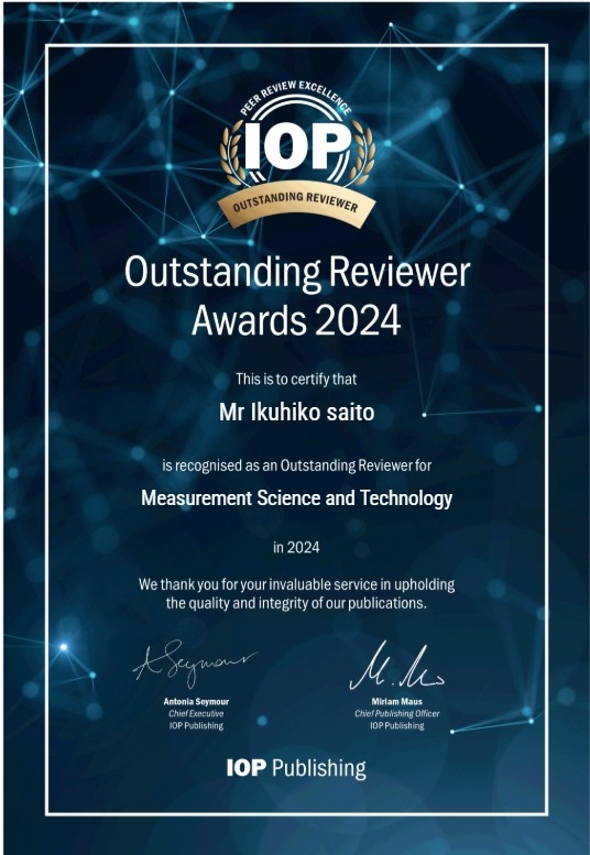 | 概要 | 国際的な学術誌であるMeasurement Science and Technologyにおける2024年の査読活動で、査読の質、量、および迅速性に優れた貢献が認められた。 |